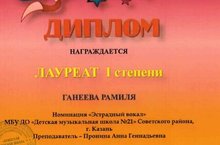 Поздравляем Ганееву Рамилю с победой в Республиканскои конкурсе детского и юношеского творчества "Star-Буа"( преподаватель Пронина А.Г.) Желаем дальнейшего покорения новых творческих вершин!