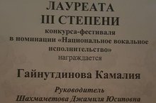 Ученица ДМШ №21 Гайнутдинова Камалия стала лауреатом 3 степени Международного конкурса-фестиваля народного художественного творчества "КУНАКЛАШУ"