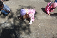 Вот и наступило долгожданное лето, все вокруг стало таким ярким и красочным! 1 июня в нашем детском саду прошел праздник. Ребятишки, девчонки и мальчишки, с большим удовольствием «царапали» разноцветными мелками по асфальту, вкладывая в свои рисунки детскую непосредственность, беззаботность, позитив и жизнерадостность. Вскоре на серой поверхности появились яркие следы, а волшебные мелки становились все меньше и меньше. В своих рисунках чаще всего дети изображали: солнце, радугу, цветы. Никто не скучал, все были заняты творчеством.