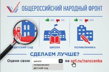 Общероссийский народный фронт реализует проект «Народная оценка качества» направленный на улучшение системы независимой оценки качества работы организаций социальной сферы посредством создания механизма личного участия граждан в их оценке. На сайте narocenka.ru каждый неравнодушный гражданин может выразить свое мнение о качестве работы поликлиники, детского сада и других организаций социальной сферы.