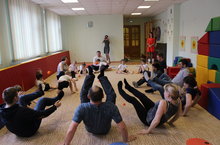 В детском саду продолжаются отчетные занятия по кружкам. Сегодня для родителей открывался кружок "Олимпиец". Родители были в восторге от занятия Белоусовой Марии Александровны по профилактике плоскостопия в кружке "Олимпиец". Мария Александровна дала возможность родителям не только порадоваться успехам своих детей, но и позаниматься вместе с ними. Родители с удовольствием поиграли, заодно узнали много разных интересных игр, в которые можно поиграть и дома. Такие мероприятия, действительно, сплачивают детей, родителей и педагогов.