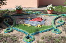 Воспитатель ИЗО цикла Ибрагимова Р.Р., на территории детского сада создала новую экспозицию.