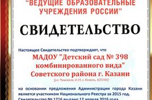 Муниципальное автономное дошкольное образовательное учреждение "Детский сад № 398 комбинированного вида" Советского района г.Казани