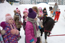 По старой доброй традиции на праздник Масленица в детском салду прошло катание на пони.