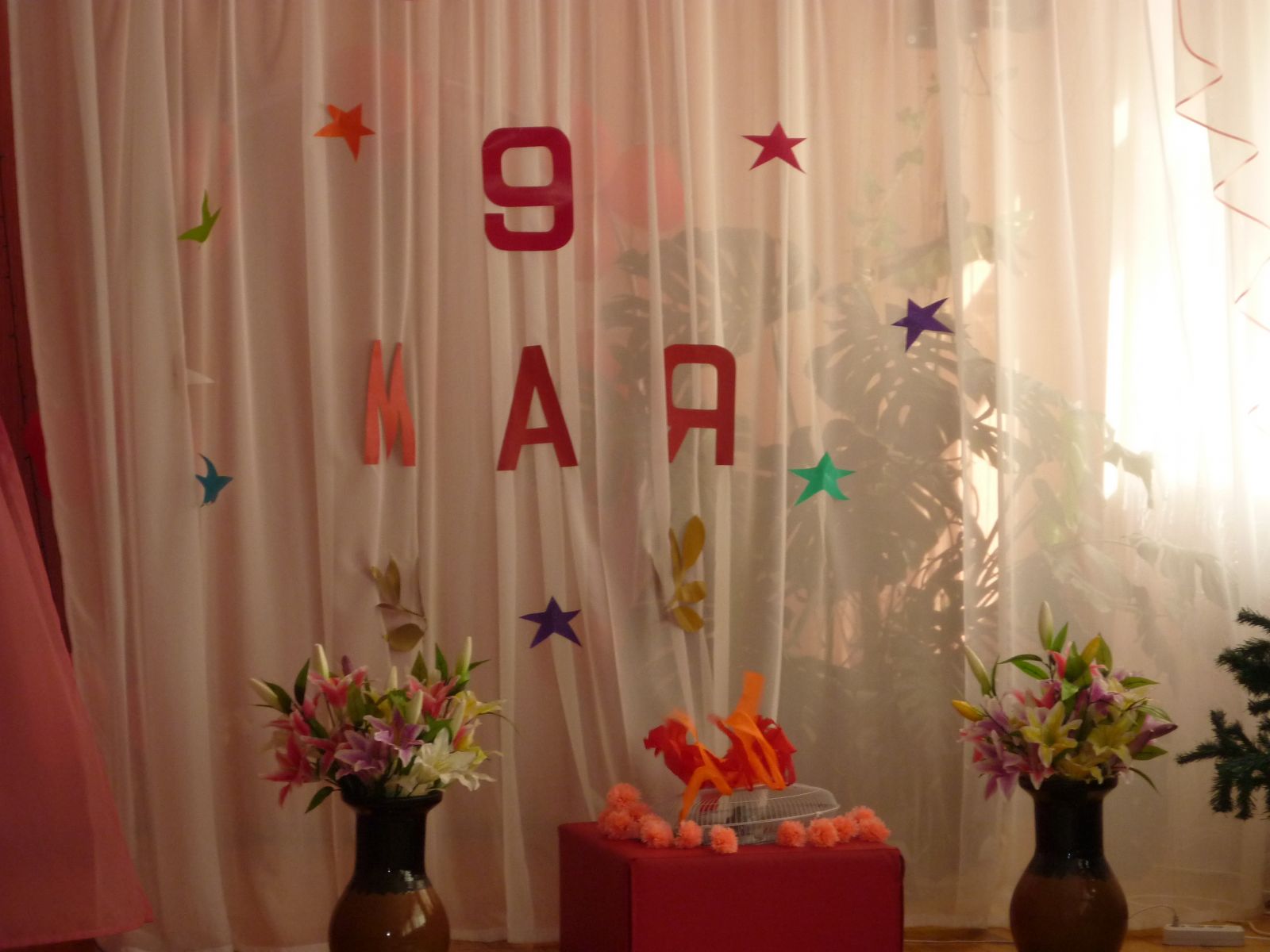 Ребята узнали много интересного из героического прошлого нашей Родины.Посмотррели кадры кино и фотохроники,услышали песни военных лет.Сами ребята старших, подготовительных и средних групп исполнили песни, танцы, прочли стихи , показали сценки о войне и Победе, о мире и нашей прекрасной России. Дети и взрослые минутой молчания почтили память погибших в Великой Отечественной войне.