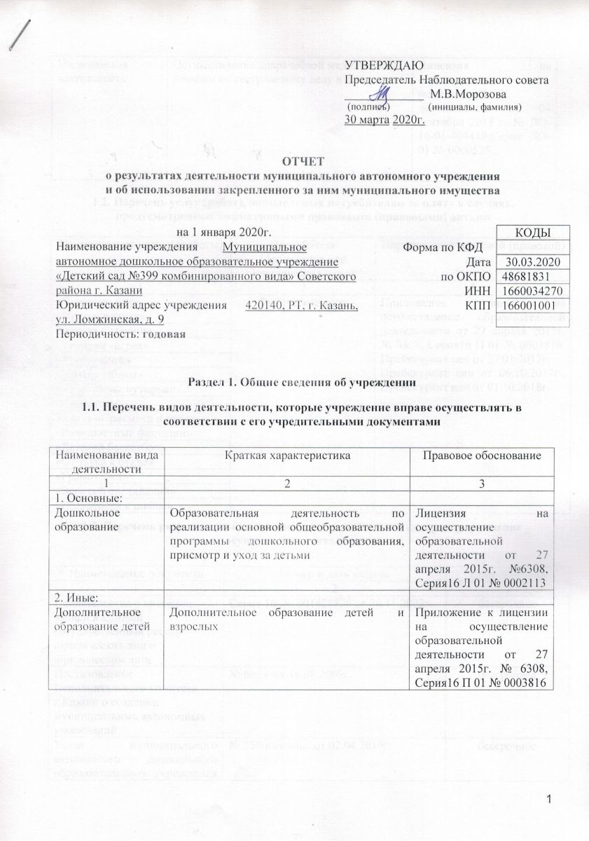Отчет о результатах деятельности и об использовании закрепленного муниципального имущества на 01 января 2020года