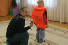 Сегодня в гости к дошколятам пришли инспектора Казанского инспекторского отделения ФКУ "Центр ГИМС МЧС РФ по РТ" Ягофаров А. А. и Тюльков В. Ю. Они пришли не с пустыми руками, а принесли настоящий спасательный жилет и спасательный канат, который незаменим при спасении людей на открытой воде. Дошколята с удовольствием примерили жилет, попробовали себя в роли спасателей и узнали как нужно вести себя, если вдруг оказались в воде.