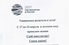 С 17 по 24 апреля в детском саду провели акцию "Сдай макулатуру! Спаси дерево!" 27.04.2017