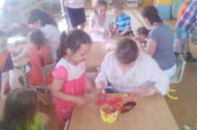 На занятие кружка "Фантазия" сегодня пришли и родители. Они вместе со своими детьми осваивали технику квиллинг. Воспитанники кружка закручивали завитки, а задача родителей заключалась в создании из них объёмных фигур. Родителями были сделаны ваза для цветов, кастрюля, тарелочка и чашечка. С работой все справились, родителям занятие очень понравилось.