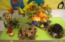 Сегодня во всех группах была проведена выставка детских работ «Осень разноцветная». Где были представлены совместные работы детей и родителей в разном техническом исполнении.