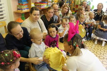 Сегодня для малышей, впервые пришедших в детский сад, в рамках Дня открытых дверей был организован праздник «Здравствуй детский сад!», в котором приняли активное участие мамы и папы! Дети и родители познакомились со своими воспитателями, друг с другом и конечно же с детским садом. Вместе с Веселинкой малыши играли, пели и танцевали.