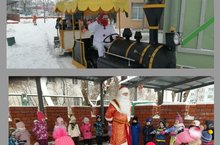 Сегодня у нас в гостях был "Веселый паровозик".Дети с удовольствием катались на паровозике, играли с Дедом Морозом.