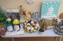 В нашем детском саду проведена выставка поделок "Зимушка хрустальная". Дети со своими родителями делали поделки к Новому году.