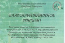 Наиболее яркие и оригинальные материалы были отмечены почетными грамотами Министерства лесного хозяйства РТ, Управления образования Казани и ГКУ «Пригородное лесничество». Среди этих работ благодарственным письмом была отмечена работа средней группы № 2 под руководством воспитателя Денисовой С.П.