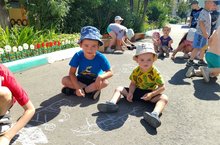 А завершился праздник совместным рисованием, педагогов и воспитанников, рисунков на асфальте.