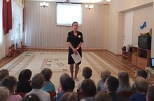 В нашем детском саду состоялась встреча с испектором отдела ГИБДД. Он провел профилактическую беседу о Правилах дорожнго движения. Цель беседы - профилактика детского дорожно-транспортного травматизма.