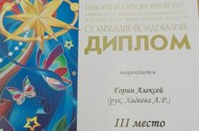 Воспитанник нашего детского сада Горин Алексей (рук. Хадеева А.Р.) награжден ДИПЛОМОМ РАЙОННОГО ОТБОРОЧНОГО ТУРА ОТКРЫТОГО РЕСПУБЛИКАНСКОГО ТЕЛЕВИЗИОННОГО МОЛОДЕЖНОГО ФЕСТИВАЛЯ ЭСТРАДНОГО ИСКУССТВА СОЗВЕЗДИЕ - ЙОЛДЫЗЛЫК в номинации "Вокал - соло, 1-ая младшая группа".