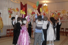 В исполнении детей прозвучали песни и стихи об осени. Ребята танцевали с осенними листочками, играли в знакомые игры:) (см.раздел "Медиатека")