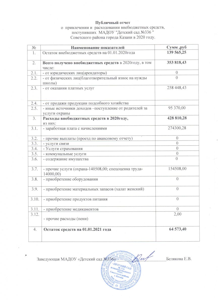 Публичный отчет о привлечении и расходовании внебюджетных средств в 2020 году