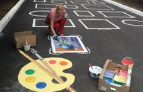 Педагоги детского сада вооружитесь разноцветной краской, валиками и кисточками и превратили новый асфальт в веселую игровую площадку!