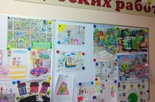 В холле детского сада открыта обучающая выставка совместных работ взрослых и детей по безопасности дорожного движения.