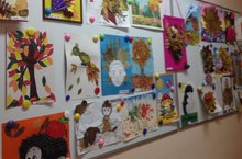 В холле детского сада открыта выставка детского творчества "Осенние аппликации в разных техниках".