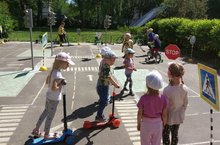 На площадке по ПДД дети учатся безопасному поведению на дорогах.