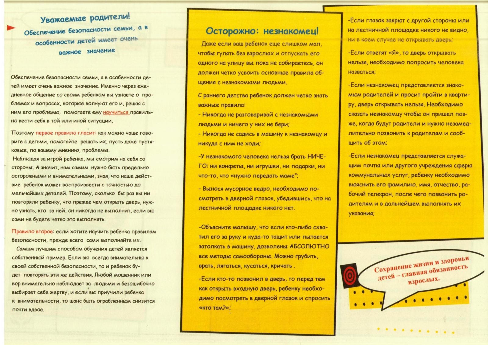 Безопасность вашего малыша. Памятка для родителей