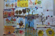 В детском саду открыта выставка детских рисунков на тему "Осенний пейзаж", выполненная нетрадиционными техниками рисования.