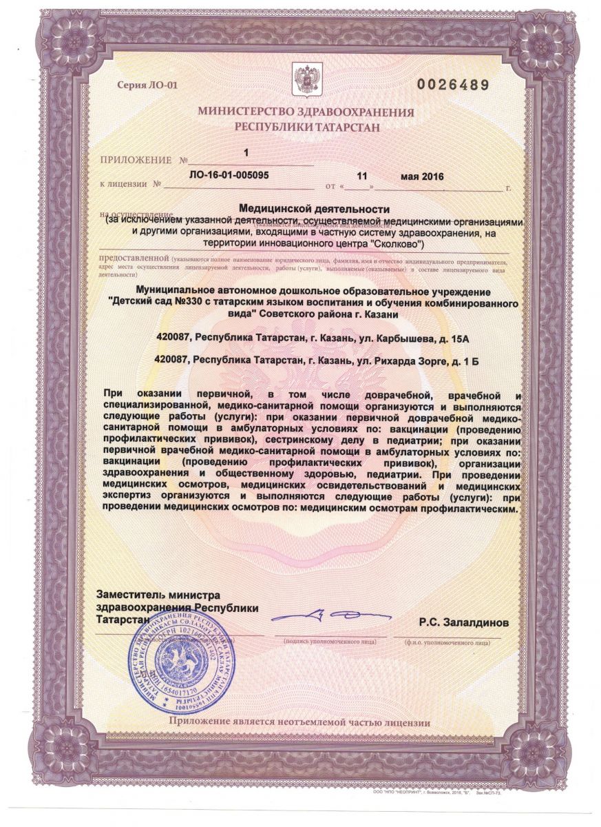 МАДОУ "Детский сад № 330 с татарским языком воспитания и обучения комбинированного вида" Советского района г.Казани