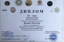 Наша воспитанница старшей группы Ахметова Ясмина приняла участие в международном онлайн конкурсе «Яңа бишек җыры» и заняла III место.