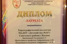 Безнең балалар бакчасы педагоглары Казан шәһәре Совет районында Россия киносы елына багышланган "Фильм, фильм, фильм!" конкурс-фестивалендә уңышлы гына чыгыш ясадылар. Конкурста Совет районының барлык мәктәп һәм балалар бакчасыннан да диярлек яшь талантлар катнашты. Чыгышлар арасында кинодан бер өзек, вокал, шәүләләр театры һәм башка бик кызыклы, мавыктыргыч чыгышлар бар иде. Безнең хореографик коллектив "Кинода бию" номинациясендә лауреат булды һәм диплом, сертификат һәм медаль белән буләкләнде.