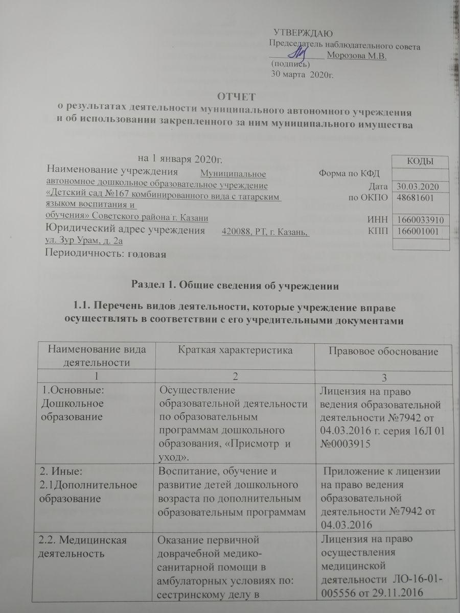ОТЧЕТ о результатах деятельности муниципального автономного учреждения и об использовании закрепленного за ним муниципального имущества на 1 января 2020г