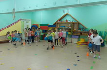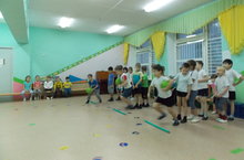 Сегодня в зале собрлись дети подготовительных групп. Для них Степанова Л.Н. подготовила и провела спортиные соревнования.