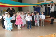 На фотографии вторая младшая группа №3. Танец "Поссорились-помирились".