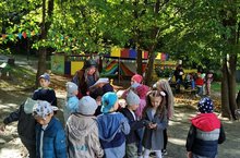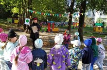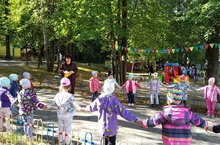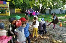 Сегодня прошел праздник "День знаний". Сначала воспитанники старших и подготовительных групп играли в игру паровозик "Умники", затем состоялся спектакль прямо во дворе детского сада.