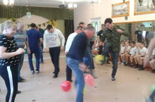 Сегодня инструктор по физвоспитанию провела для пап и детей подготовительных групп спортивное развлечение "На военных учениях". Пришли 23 папы и 3 дедушки, которые очень активно принимали участие во всех конкурсах. В конце праздника все дети получили призы, а папы-шоколадки.