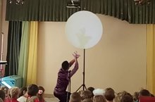 Сегодня в детском саду прошел праздник, посвященный Дню Знаний. С утра дети собрались в музыкальном зале, чтобы посмотреть представление театра теней. Замечательное было представление.Кроме непосредственно теневого спектакля в гости к детям пришел двухметровый медведь и призвал детей не обижать зверей и насекомых. После теневого спектакля актеры показали шоу мыльных пузырей. Актер работал только своими руками. Представление длилось 40 минут.Затем прозвучал сигнал на тренировочную эвакуацию. все группы покинули помещение через запасные выходы и уложились в нормативное время.Затем дети поиграли на 7 площадках в подвижные игры. Передвигались по маршрутным картам. После сна дети вновь собрались в зале. К ним пришел Буратино и подарил подарки. А дети подарили своим воспитателям букеты цветов.На фотографии фрагмент выступления театра теней. -
