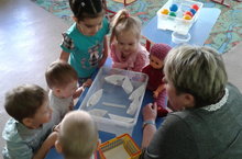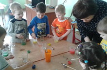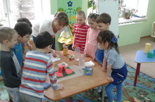 Сегодня занятие с применением эксперимента прошло в самой маленькой ясельной группе №7. Занятие провела Никитина Н.М. Дети узнали что легче, что тяжелее. (Вата или камень). Почему мячик в воде не тонет, а камень тонет. Закрепляли цвета на татарском языке.