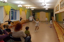 Сегодня прошло собрание, где были показанызанятия дополнительных услуг для родителей детей старших и подготовительных групп. На фотографии Танец с лентами. Кружок художественной гимнастики "Мир грации".