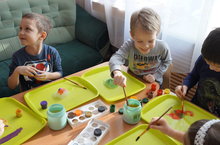 В феврале месяце в детском саду проходят открытые просмотры деятельности педагогов с детьми по дополнительным образовательным программам. В связи с эпидемией гриппа, и ограничительными мерами, педагоги демонстрируют свою профессиональную компетентность только перед сотрудниками ДОУ. Сегодня педагогическими находками делилась руководитель кружка "Раннее развитие" в средрней группе Юлия Хайрова. В ходе образовательной деятельности дети познакомились с техникой апликации с использованием пряжи, поиграли в медвежат и получили удовольствие и новые навыки.