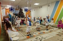 В старших группах ребятам нужно было вылечить захворавшего Деда Мороза, которого околдовали зловредные Зюзюка и "Чудо в перьях" Прекрасная Снегурочка вместе с ребятами помогли Деду Морозу , а отрицательные герои праздника , благодары доброте ребят, больше не вредничали и обещали так себя больше не вести.