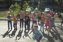 "Мир детства!". Праздник посвященный дню защиты детей. Ребята участвовали в спортивных играх и приняли участие в конкурсе рисунков на асфальте "Мир глазами ребенка".