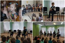 21 и 22 мая юные музыканты побывали в гостях в нашем детском саду. Это не первая встреча воспитанников детского сада и учеников музыкальной школы. Дошколятам очень нравится, когда учащиеся музыкальной школы приходят к ним в гости. Педагоги детского сада и музыкальной школы справедливо считают, что такие мероприятия важны и необходимы как для воспитанников детского сада, так и для учащихся музыкальной школы. Музыка всегда оставляет ярчайший след в эмоциональной памяти дошколят и создает большую мотивацию к занятиям музыкой в детском саду, появляется желание - стать учащимся музыкальной школы. В свою очередь, непосредственные участники концертов - ученики музыкальной школы - оттачивают своё исполнительское мастерство, т.к. такие мероприятия дают возможность учащимся чаще выходить на сцену не просто как ученикам, а как настоящим концертирующим музыкантам.