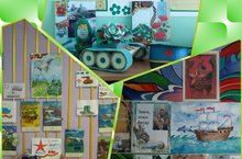 В фойе нашего детского сада была организована выставка из рисунков и поделок наших воспитанников к 23 февраля.