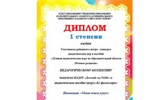 Районный смотр - конкурс "Лучшая дидактическая игра по образовательной деятельности "Речевое развитие" 01.04.2018