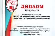 Наши педагоги - Фахриева Гузель Нурдиловна, Чикилева Наталья Ивановна награждены Дипломом участника конкурса по профилактике ДДТТ "Зеленый огонек - 2018" среди ДОО г.Казани в номинации "Лучшее ДОУ по обучению детей ПДД и пропаганде БДД среди родителей"