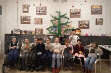 5А класс и кл руководитель Сираева Ю.В. у новогодней елки в школе