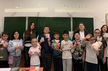 1А класс и кл. руководитель Стрелкова Е.В. посетили мастер-класс в мастерской Кота и изготовили колпачки