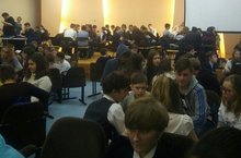 Сегодня в гимназии 19 Приволжского района, прошел финал игры "Что?Где?Когда?" среди команд 5-7 классов. Нашу школу представляли учащиеся 7б класса. Это их первое участие. Всего в финале участвовало 28 команд нашего города. Молодцы!